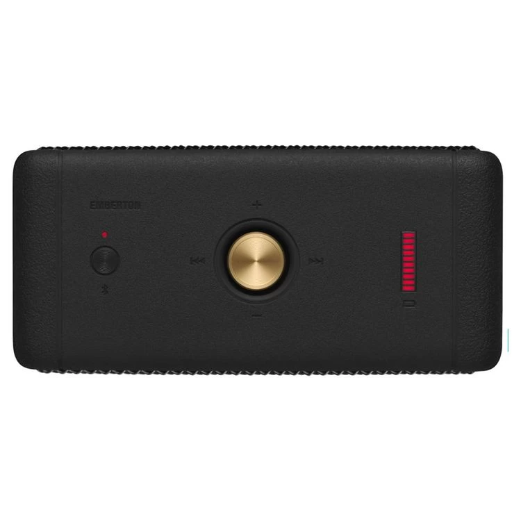 Emberton de Marshall vous offre un son 360 degrès avec sa technologie True Stéreophonic l’Emberton dispose d’un son absolu et dispose de 20 heures d’autonomie en portatif, il vous suffira de 20 min pour une charge de 5 heures. L’enceinte Emberton Marshall est IPX7 son design robuste et ses 700 grammes, elle surporte toutes conditions météorologiques elle sera votre compagnon de route avec sa petite taille et sa puissance. Pratique Non !!!!. Son Bluetooth 5.0 vous permettra de connecter votre Smartphone, tablette pour profiter d’un son d’une qualité exceptionnelle.